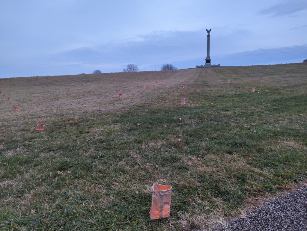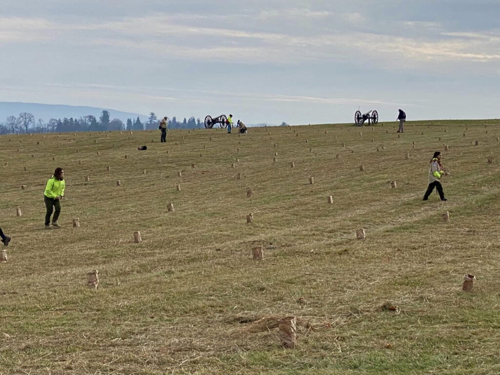 The morning of the event, volunteers gather at the battlefield to get their assigned location for placing the luminaries. More than 1,100 volunteers comprised of scouts, church groups, school groups, friends, and park volunteers, go about the task of placing 23,110 luminaries on the northern portion of the battlefield.