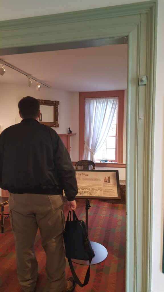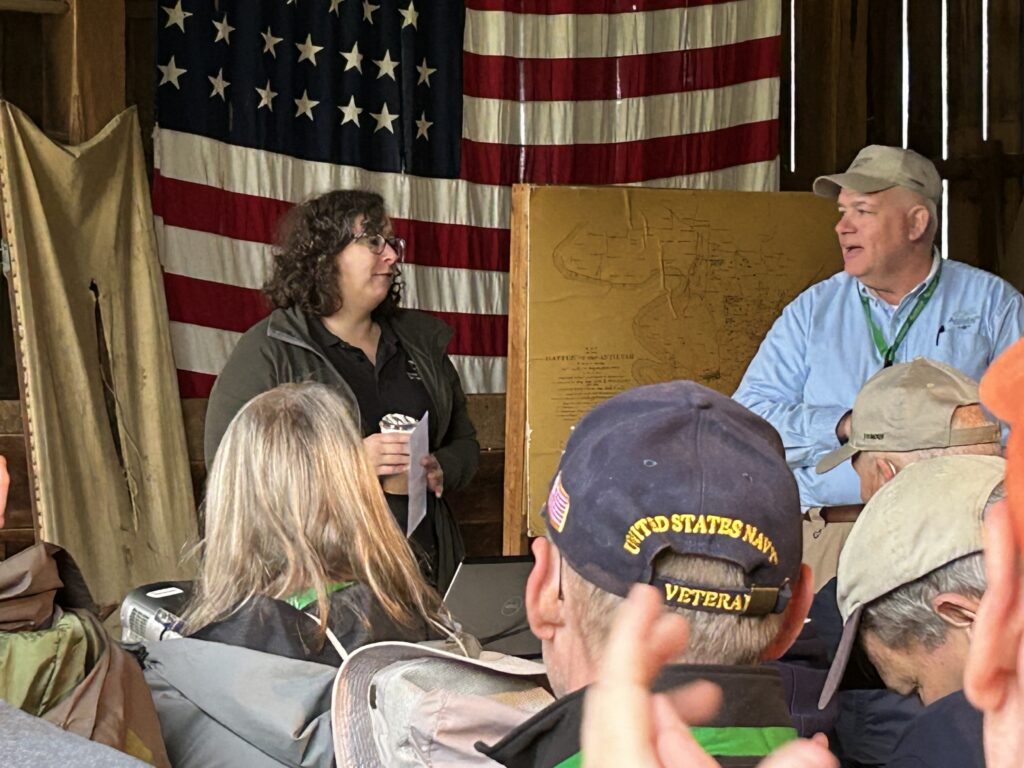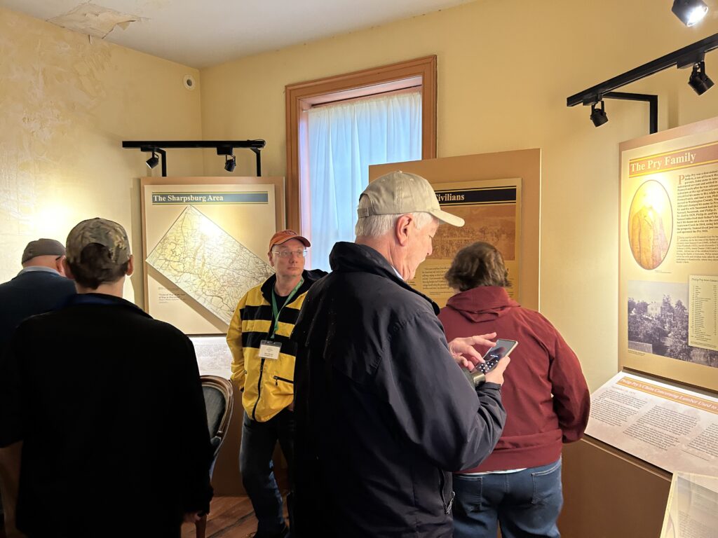 Once members concluded the tour, we zipped up to the Newcomer House for the last two excursions lead by Kevin Pawlak and Jim Rosebrock. Members also had a chance to look through the Newcomer House and some of their new displays. Kevin discussed the Union reconnaissance efforts across the Middle Bridge, while Jim pointed out the artillery actions in that area on Sept. 16.