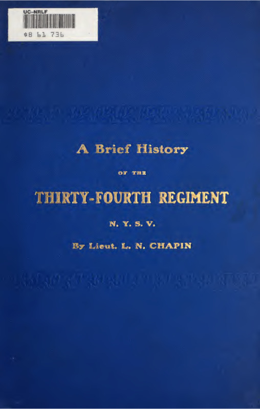 - A history of the 34th New York Infantry Regiment, including a complete roster of all officers and men and a full account of the dedication of the monument on the battlefield of Antietam.