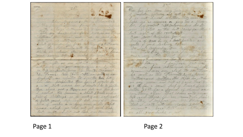 - Summery of movements and events expresses desire for new clothes. This item includes an image of original letter, a transcription, and several other soldiers mentioned