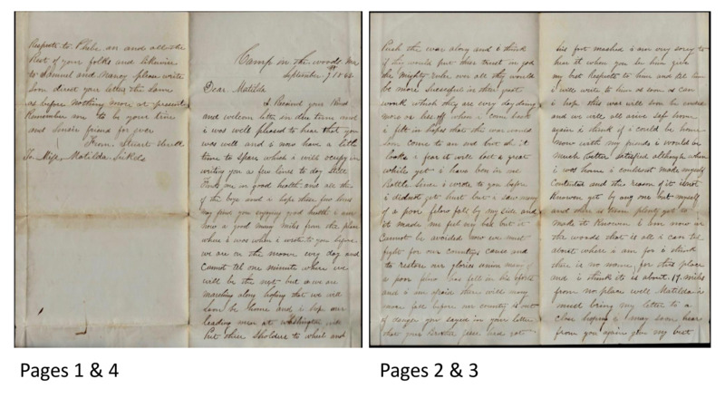 From Pvt Stewart J Hull, 2nd NJ Inf to Matilda Sickels