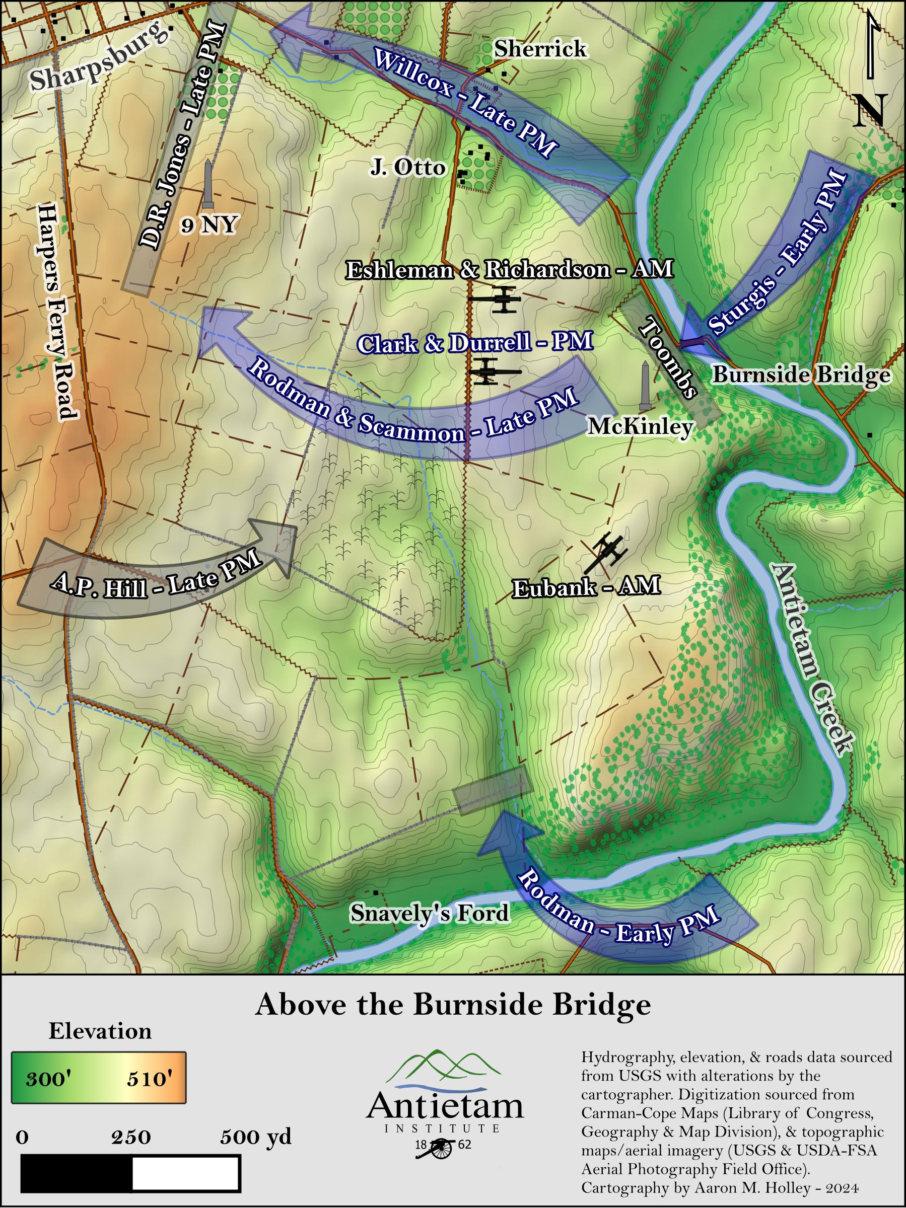 Antietam Journal, Vol. 7, Fall 2024. J. O. Smith, "In Antietam’s Footsteps: Above the Burnside Bridge" Map