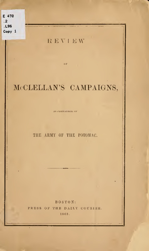 - Review of McClellan's campaigns, as commander of the Army of the Potomac