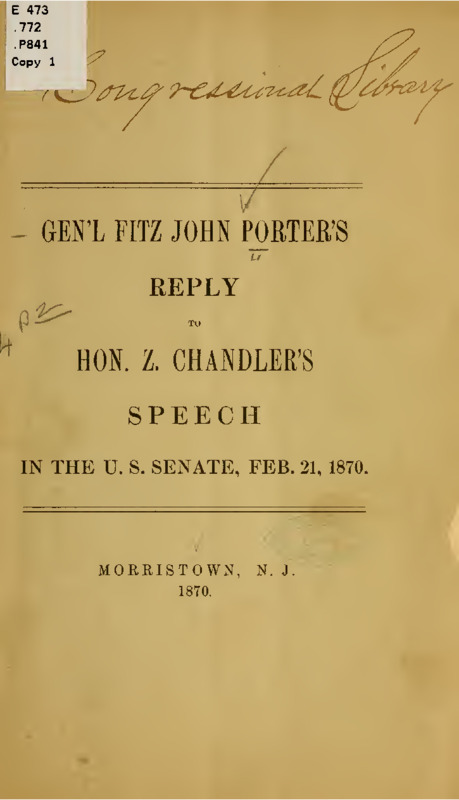 - Gen'l Fitz John Porter's reply to Hon. Z. Chandler's speech in the U.S. Senate, Feb. 21, 1870