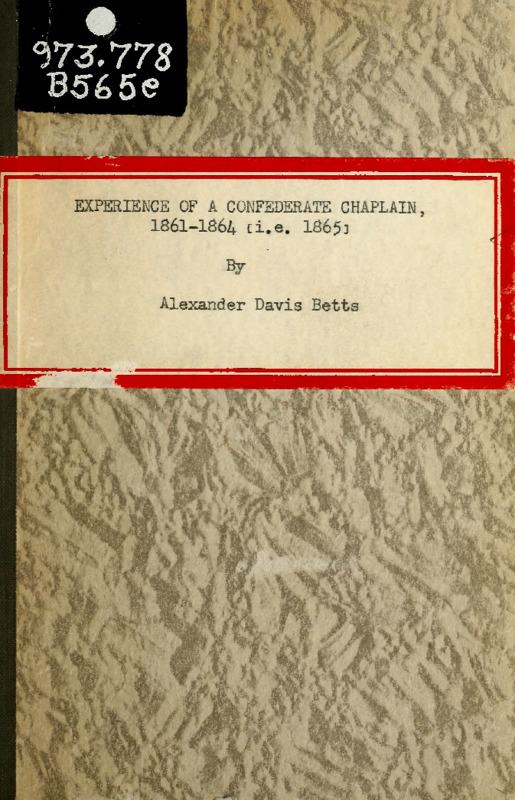 - The personal memoir of Confederate chaplain Alexander Davis Betts and his experiences serving in the Thirtieth North Carolina Infantry Regiment